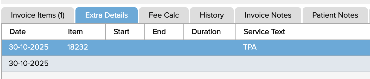 When performed in association with procedures from MBS group T8 (items in the range 3xxxx to 511xx) you may find that they are more likely to get paid if they are on an invoice by themselves, with "TPA" added in the Extra Details tab.